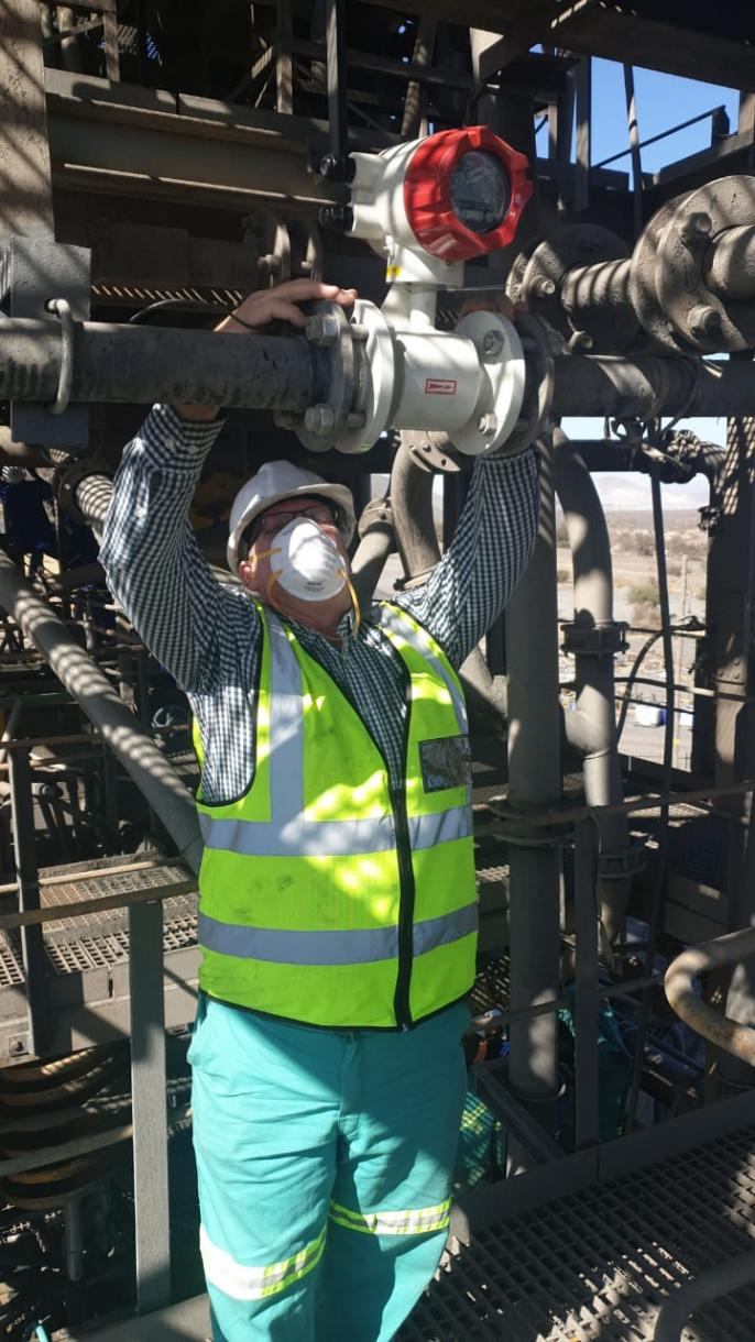 位于南美洲秘魯利馬的一家當?shù)刂牟傻V企業(yè),圖中的工程師正在新建的洗礦廠內(nèi)安裝米科的電磁流量計。該項目主要保證清洗礦砂過程中的水量的計量,而洗礦過程使用水量控制一直都是工廠節(jié)能減排的重要抓手。