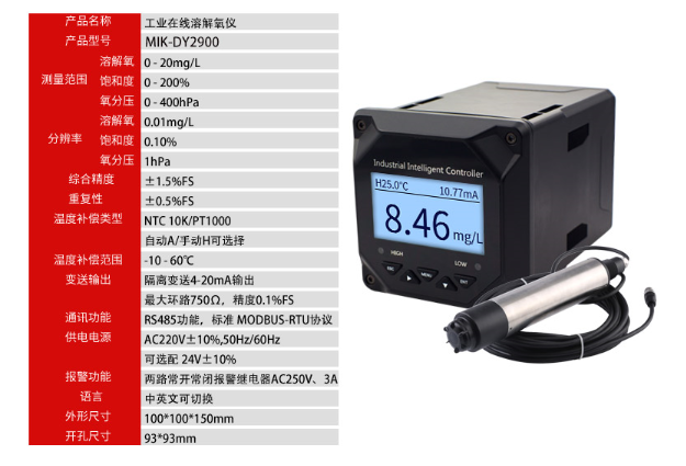 技術參數:在線溶解氧測量儀