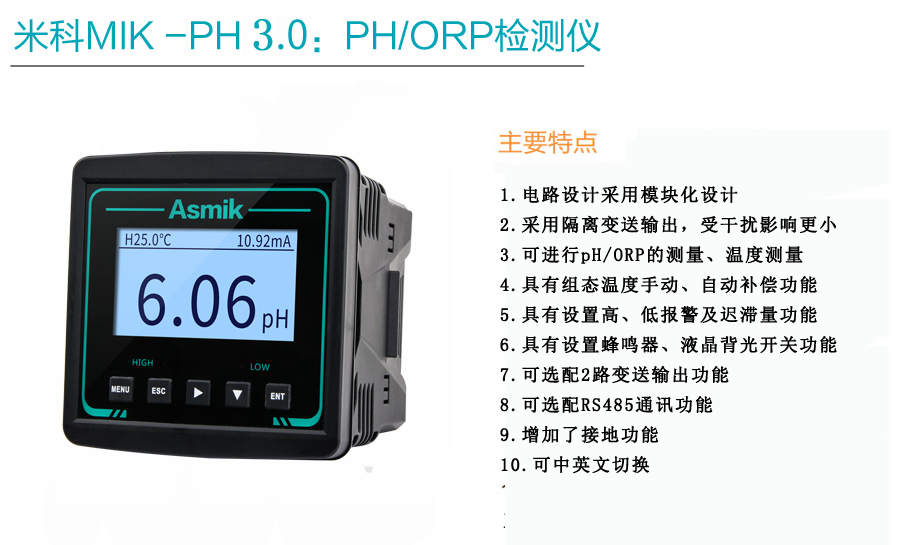 測(cè)量范圍:PH(0-14 pH);ORP(-1000-+1000) mV或(-2000-+2000 mV)(可定制)