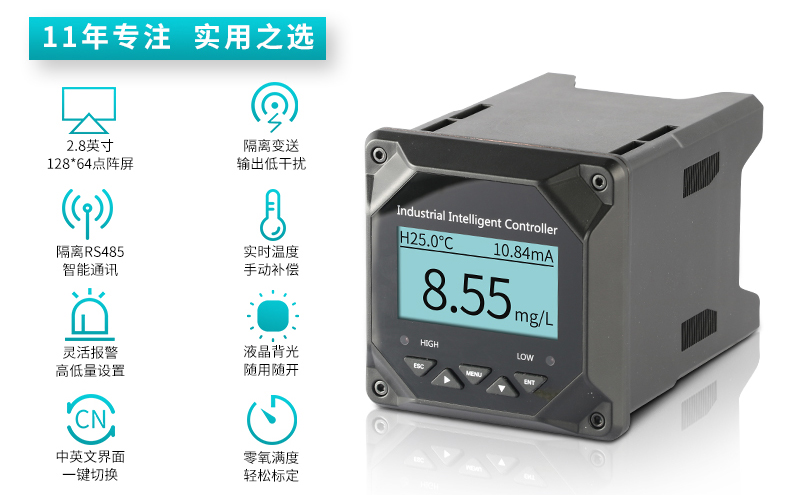 4、可進(jìn)行DO/SAT/OPP的測(cè)量、溫度測(cè)量、上下限控制、變送輸出、RS485通訊