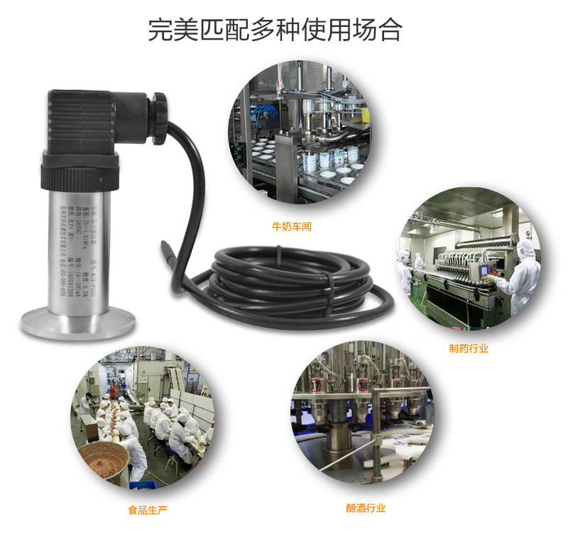 MIK-P350系列平面膜結(jié)構(gòu)壓力變送器選用德國進(jìn)口擴(kuò)散硅芯體,采用平面膜直接感受壓力。傳感器接口有卡箍式,M27×2,法蘭式可供選擇。輸出信號有電壓、電流、頻率信號等可選擇,傳感器平膜片防止了結(jié)垢,不衛(wèi)生及粘稠液體堵塞等問題。廣泛應(yīng)用于食品、醫(yī)藥、衛(wèi)生及釀酒工業(yè)等部門。