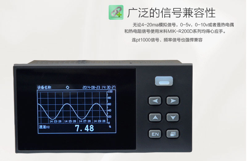 適用場合:米科MIK-R200D 無紙記錄儀1~4通道,集數(shù)據(jù)的測量、顯示、處理、運算、報警、記錄報表等多種功能于一身??刹杉绷麟妷?、電流、熱電偶、熱電阻等常規(guī)數(shù)值的的采集與記錄。